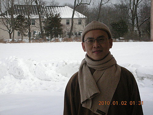 下午開始雪融了, 想必晚上還會再下,因還很冷! 中午1點上課,連上兩堂,加上午一堂 ,今天三堂課結束。 待會開始準備明天的三堂,累也…! 仁公(仁俊長老)身體還不錯呢,真厲害! 傍晚四點半的晚課,要坐禪,好冷哦! (可能太冷了,笑的有點僵喔!)